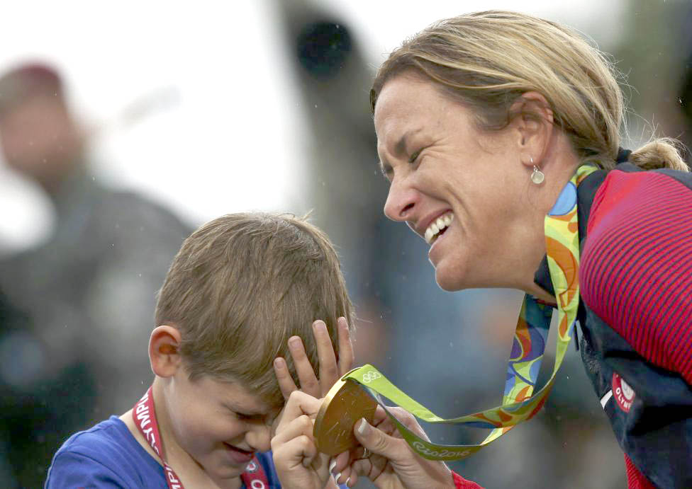 کریستین آرمسترانگ و پسرش پس از گرفتن مدال طلا