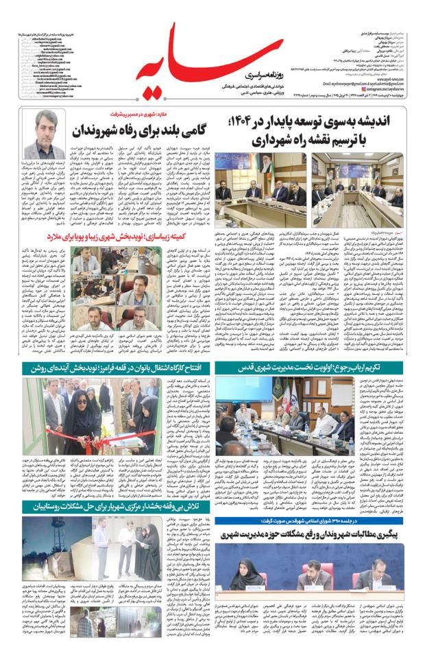 پیگیری مطالبات شهروندان و رفع مشكلات حوزه مدیریت شهری