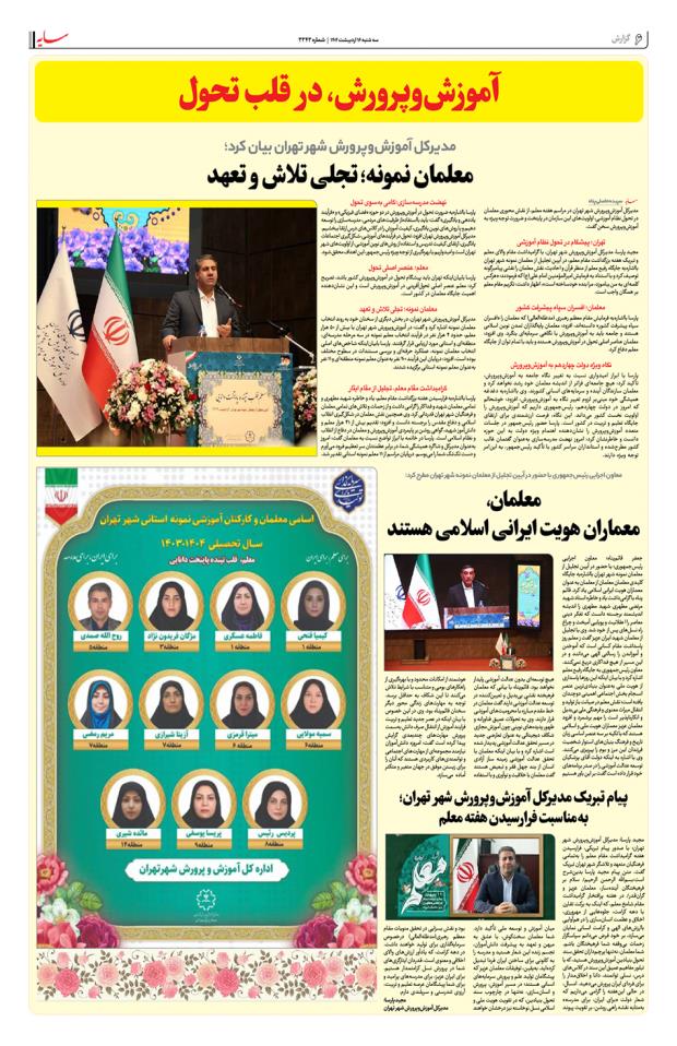 پیام تبریک مدیرکل آموزشوپرورش شهر تهران؛ بهمناسبت فرارسیدن هفته معلم