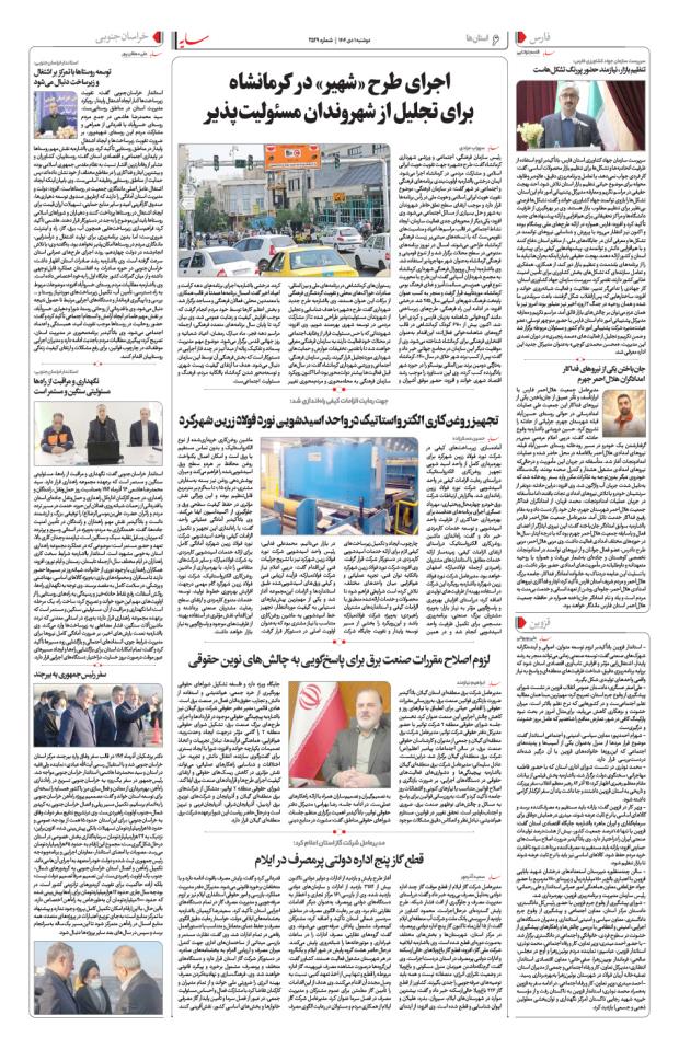 اجرای طرح «شهیر» در کرمانشاه برای تجلیل از شهروندان مسئولیت‌پذیرتجهیز روغن‌کاری الکترواستاتیک در واحد اسیدشویی نورد فولاد زرین شهرکردلزوم اصلاح مقررات صنعت برق برای پاسخ‌گویی به چالش‌های نوین حقوقیقطع گاز پنج اداره دولتی پرمصرف در ایلامفارسقزوینخراسان‌جنوبی