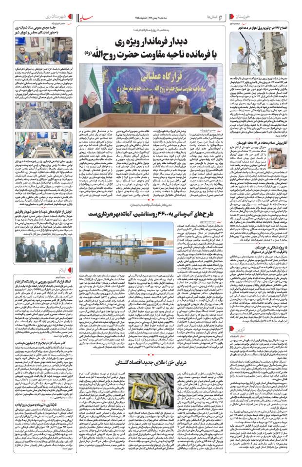دیدار فرماندار ویژه ری با فرمانده ناحیه مقاومت حضرت روح‌الله‌(ره)طرح‌های آب‌رسانی به ۴۶۰۰ روستانشین، آماده بهره‌برداری‌ستدریای خزر؛ طلای جدید اقتصاد گلستانخوزستانقزوینشهرستان ریایلام